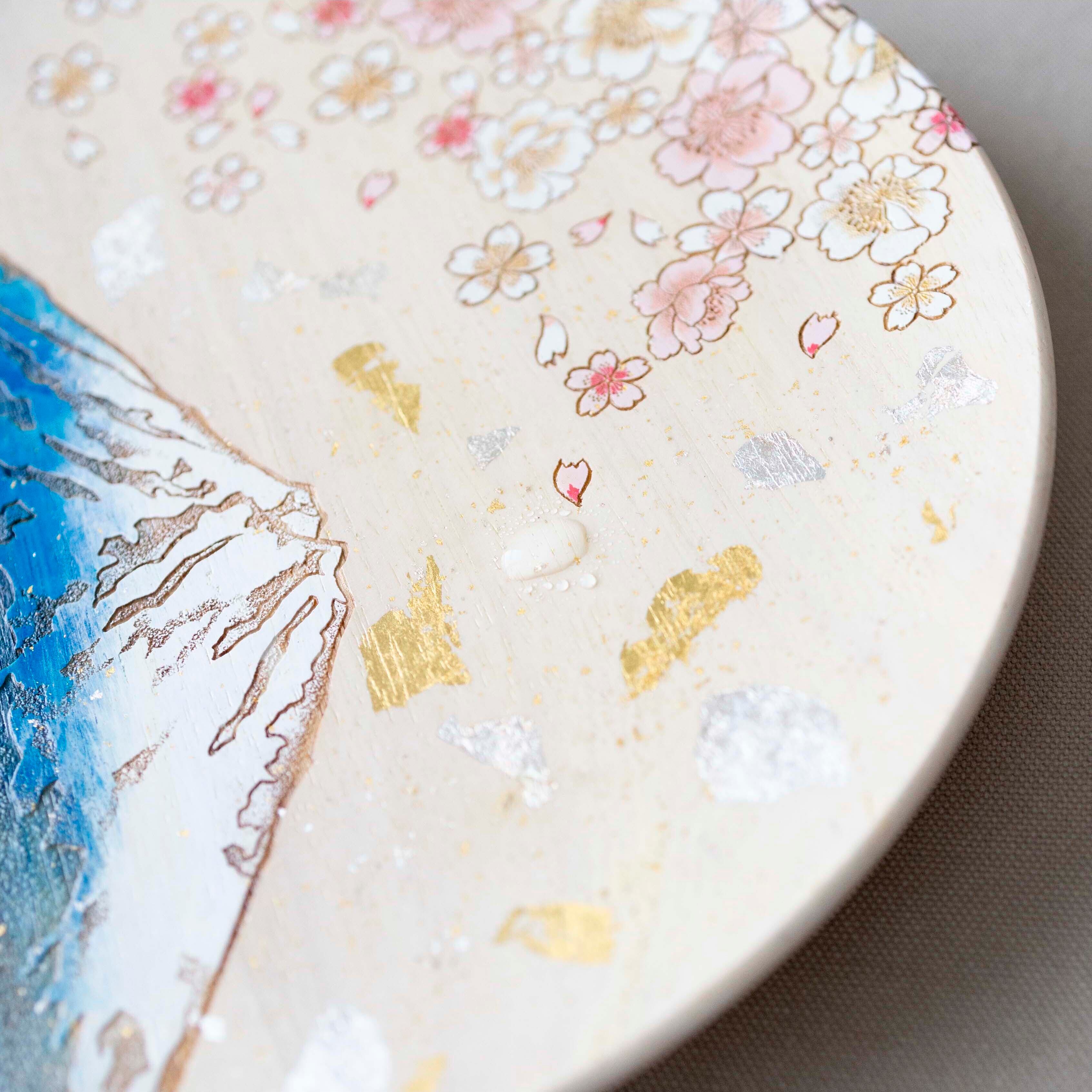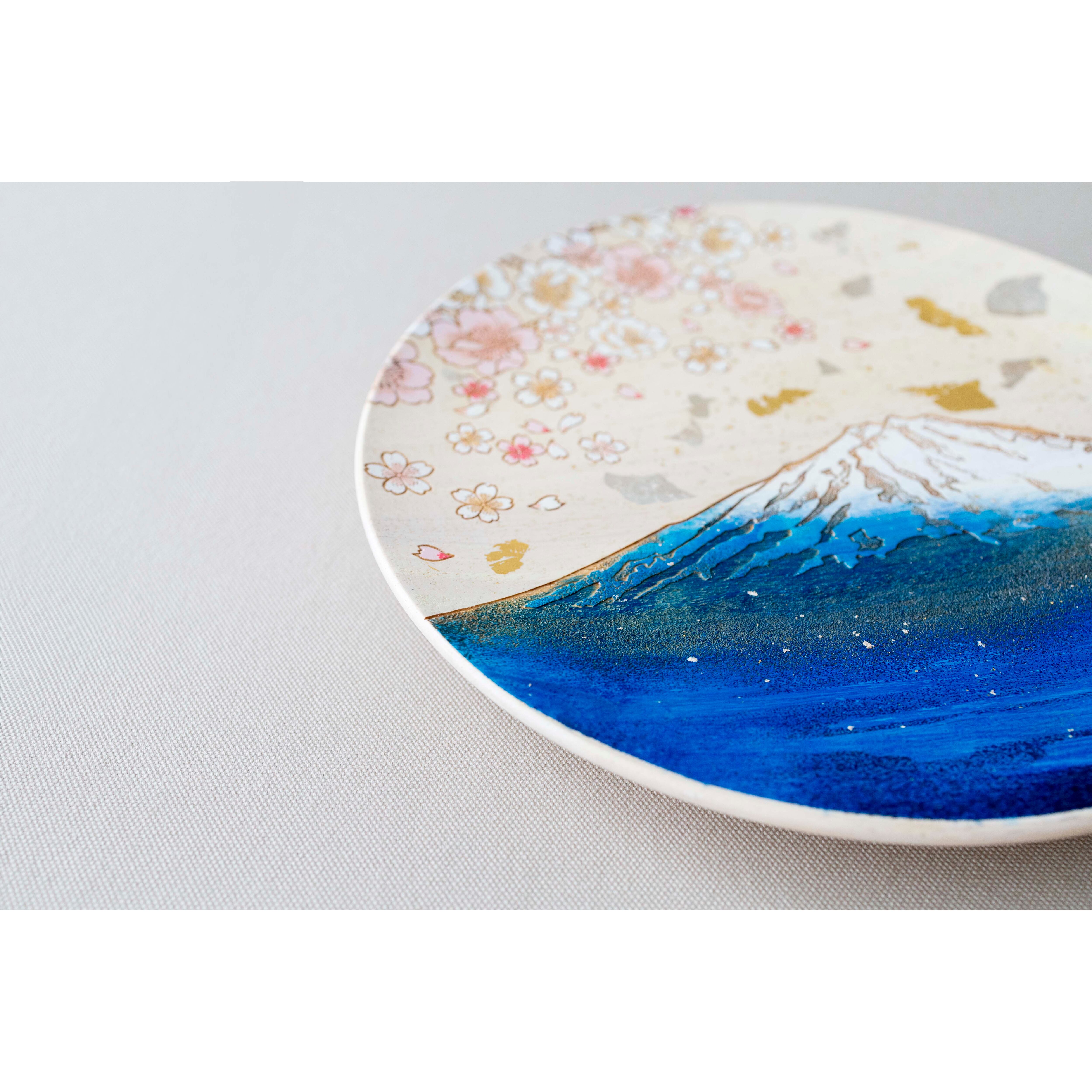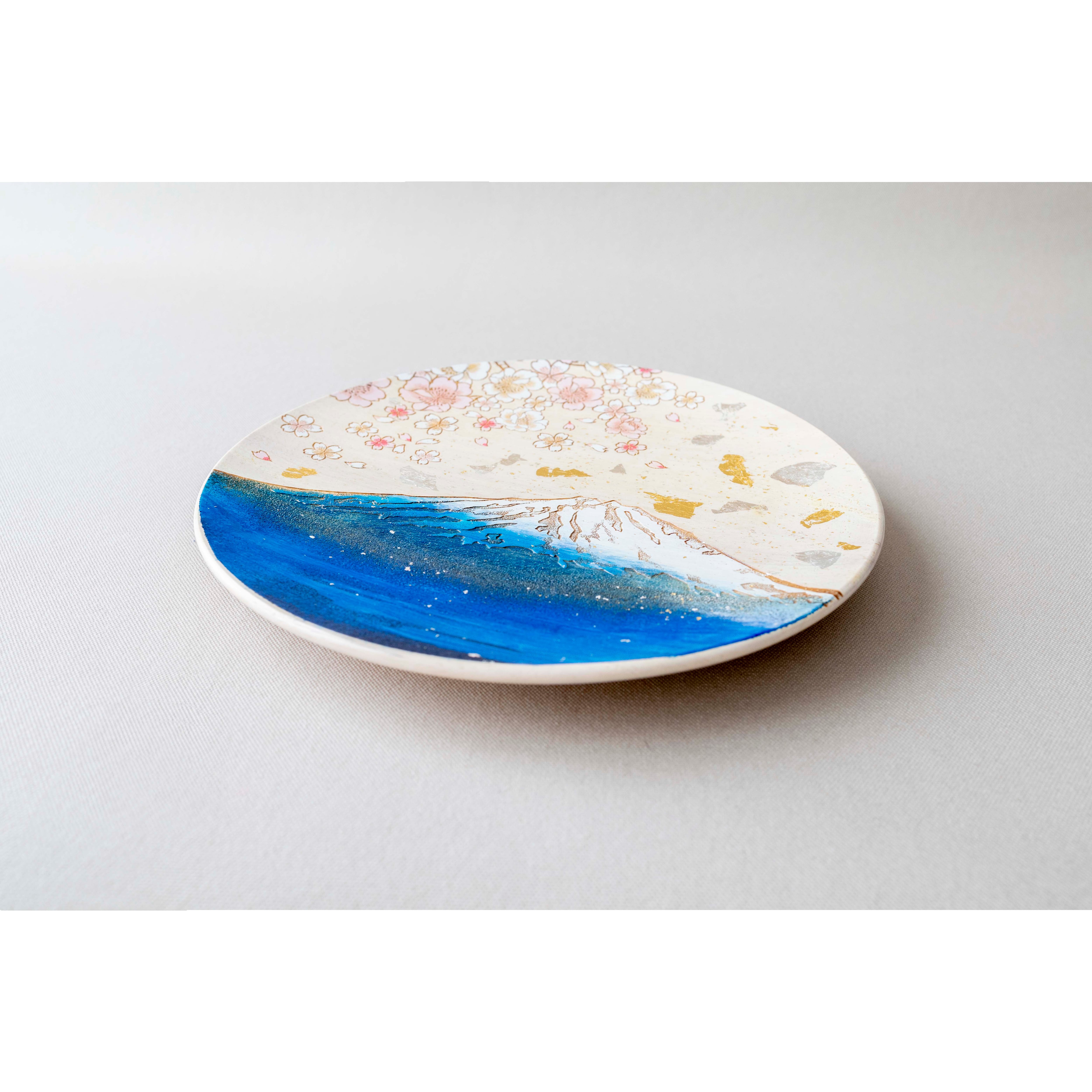 日本の象徴ともいえる「富士山」と「桜」を一枚の皿に描いた飾り皿です。