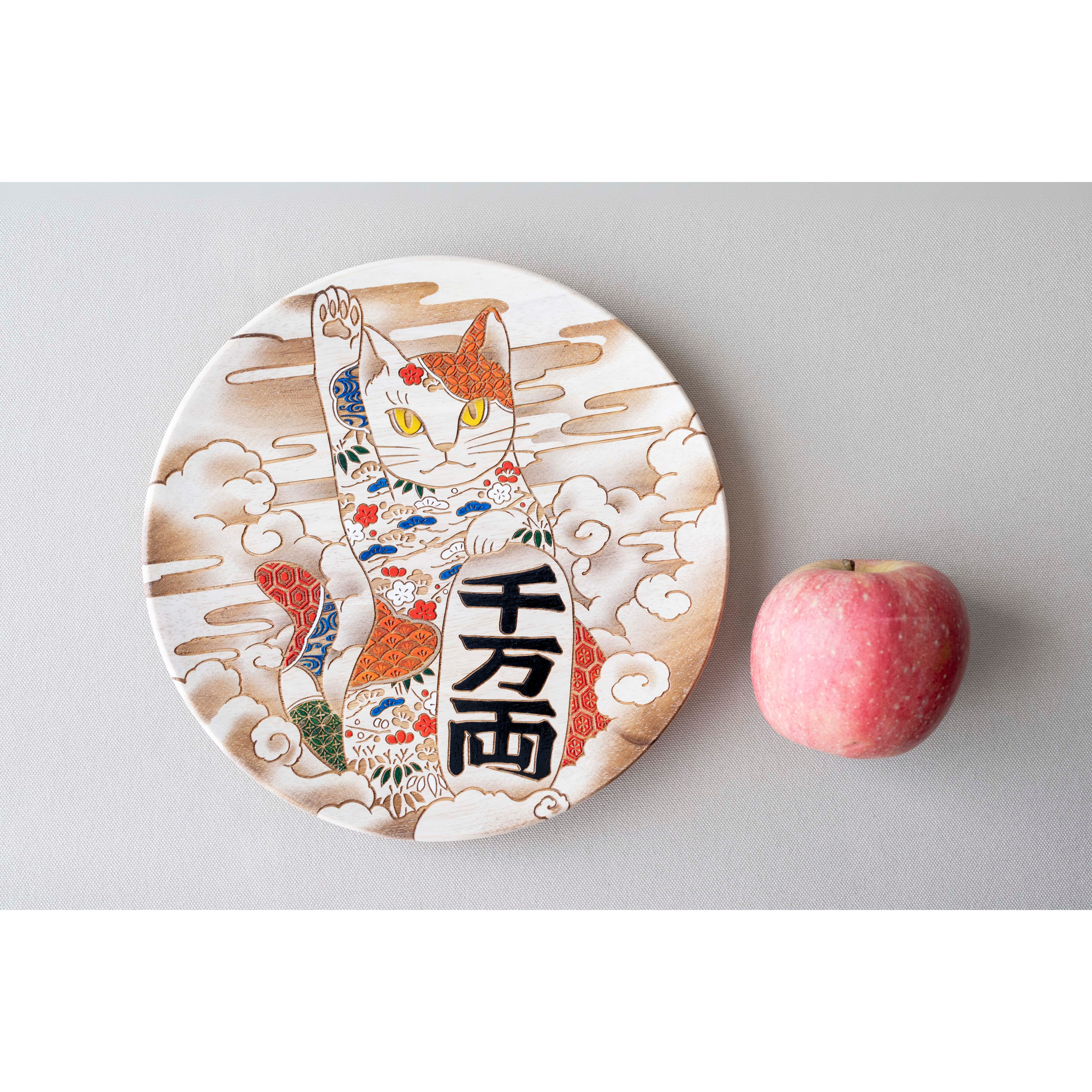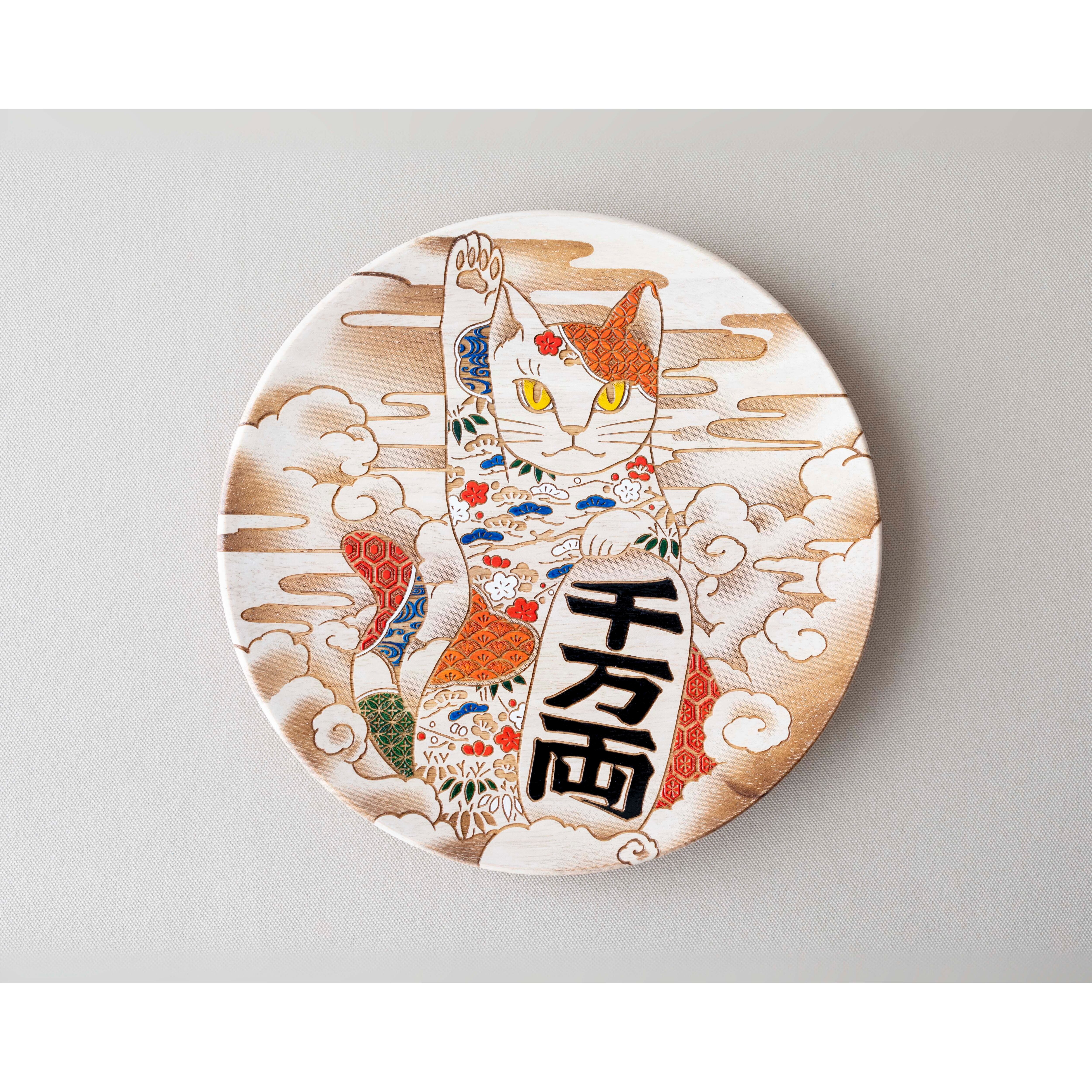 日本で縁起物として親しまれてきた「招き猫」を、華やかな和のモチーフで彩った、福を呼び込む飾り皿。