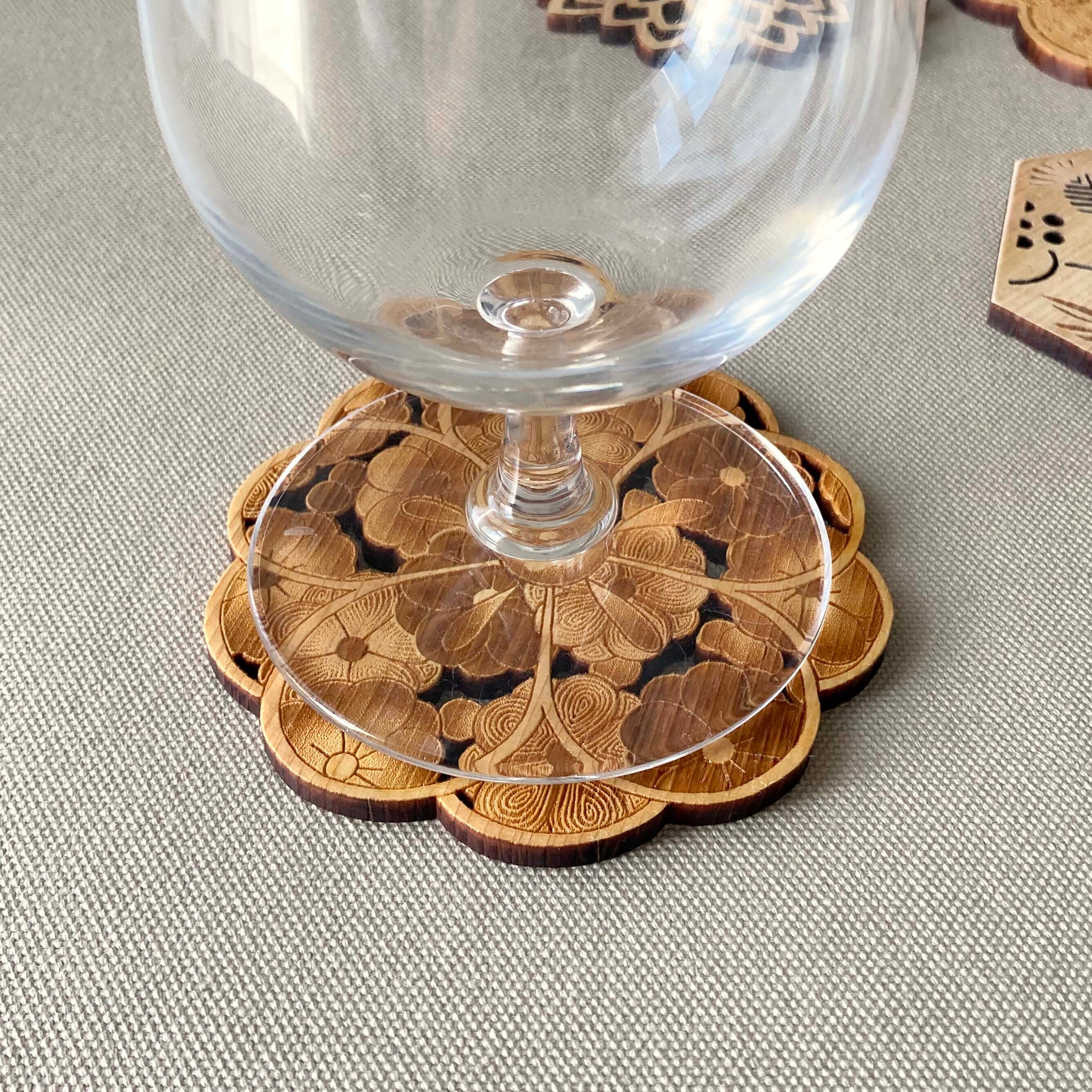 このコースターは梅の紋様の中にさらにたくさんの梅を配置したデザインで、