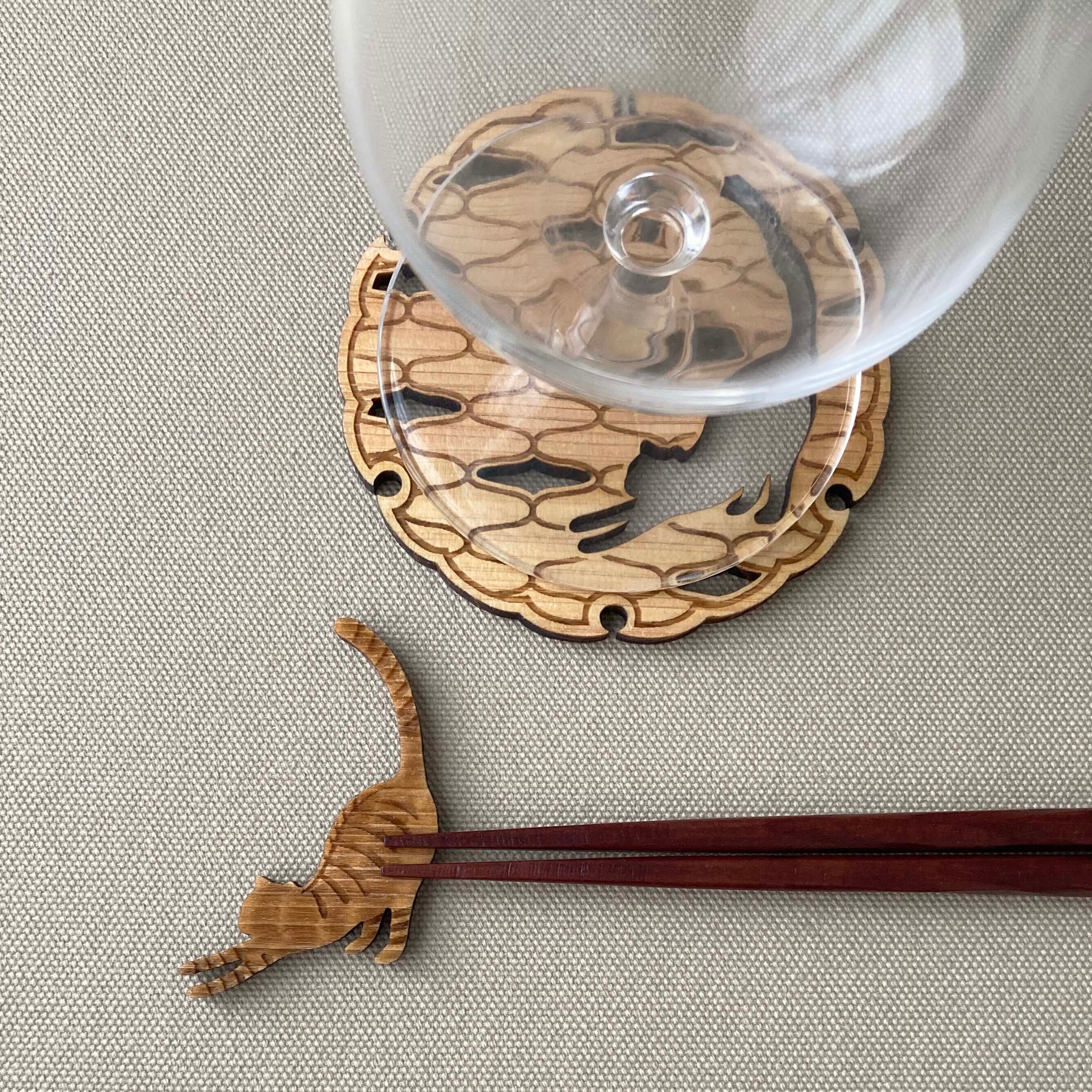愛らしい動物の箸置きと友禅柄のコースターのセット「Tomogu」